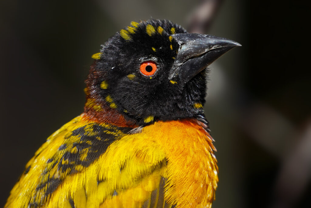 Weiblicher und männlicher Textor-Webervogel.