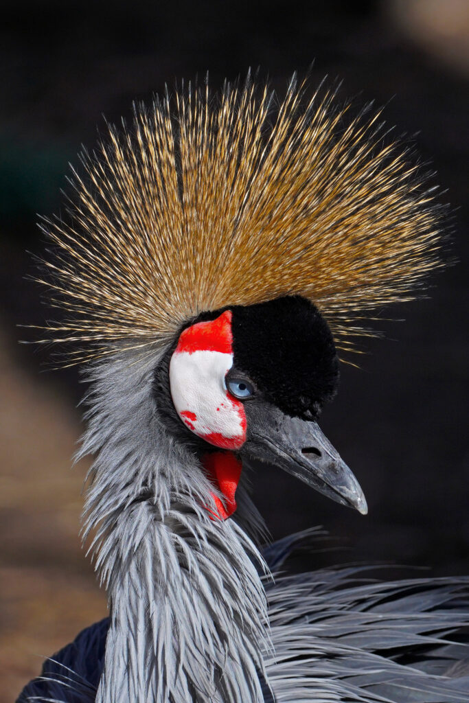 Hier mal eine Nahaufnahme eines Kronenkranichs.
