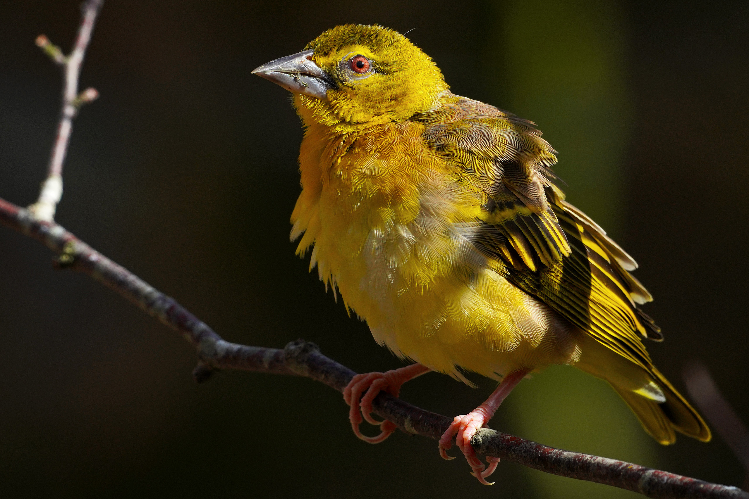 Weiblicher und männlicher Textor-Webervogel.