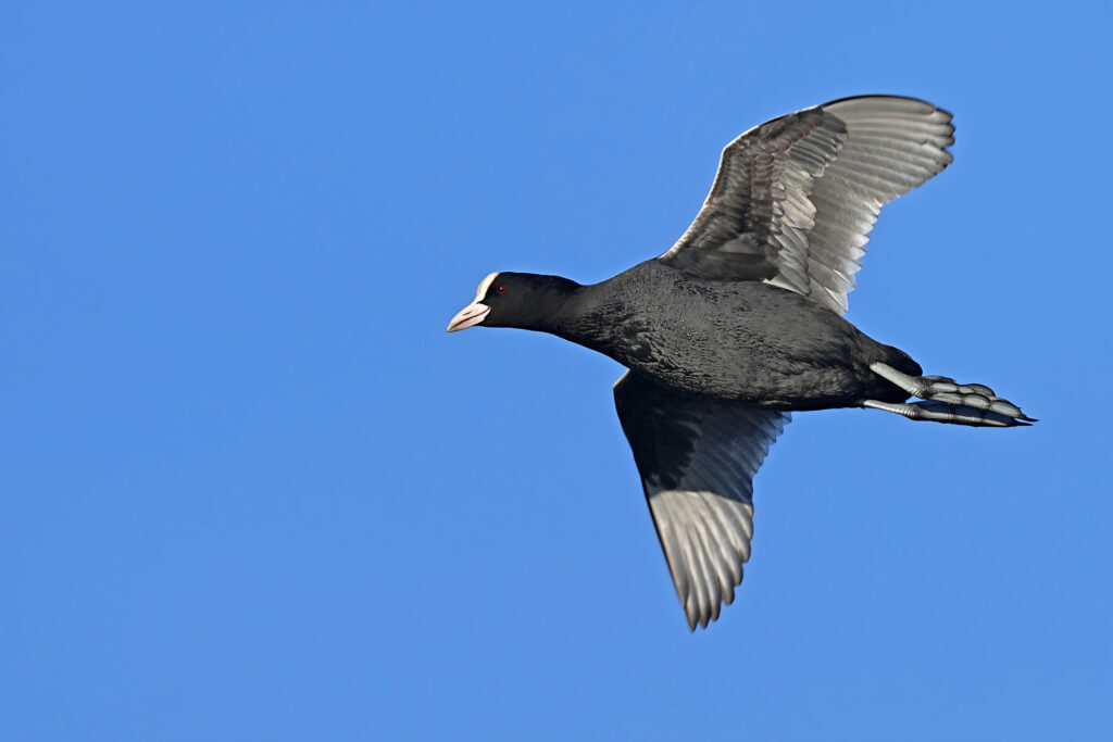 Eher selten erwischt man eine fliegende Blessralle, diese präsentierte sich prächtig!