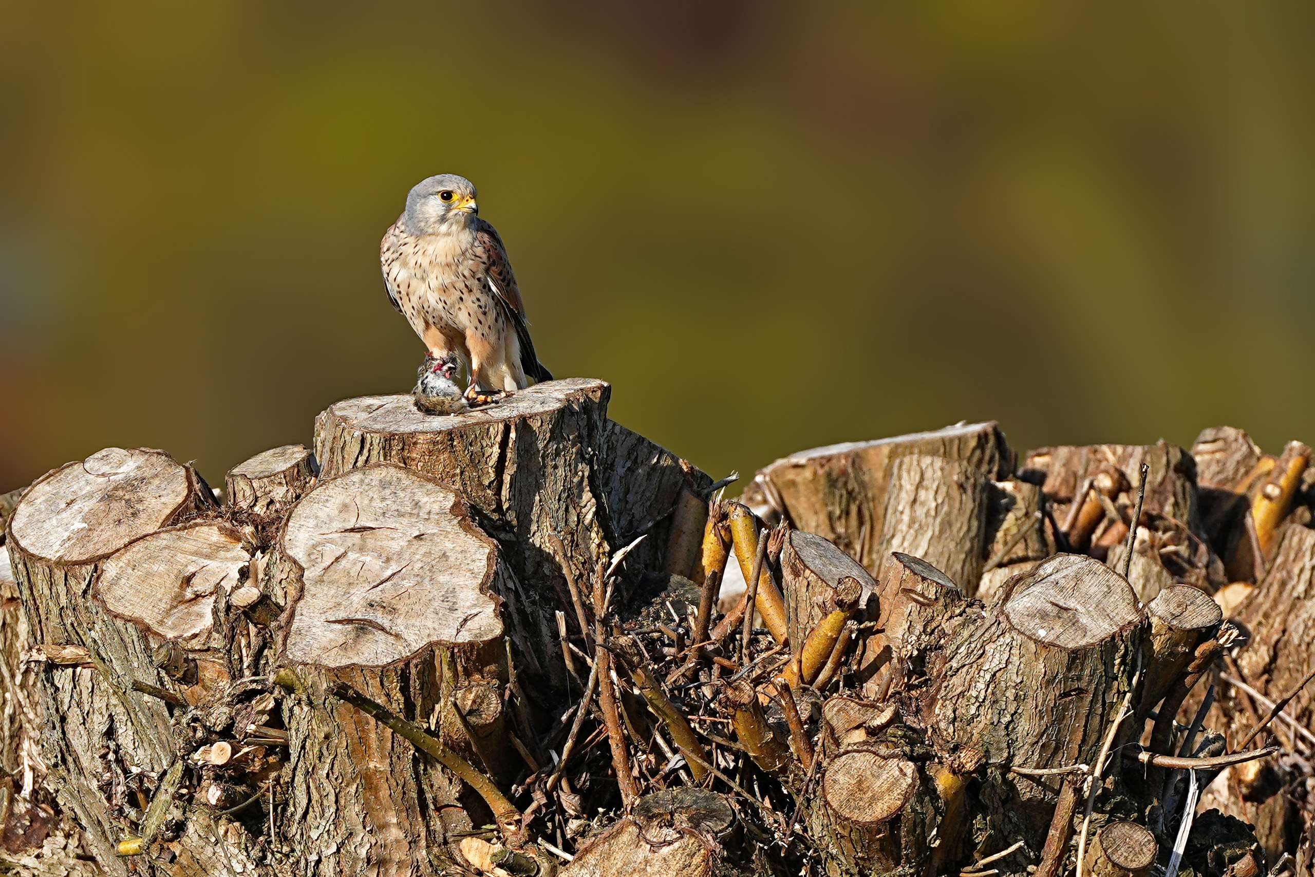Der Turmfalke erbeutete eine Maus auf der Kranichwiese und verspeiste diese auf eine der radikal zurückgeschnittenen Kopfweiden. Etwas weit weg, aber ich wollte ihn nicht bei seiner Mahlzeit stören.