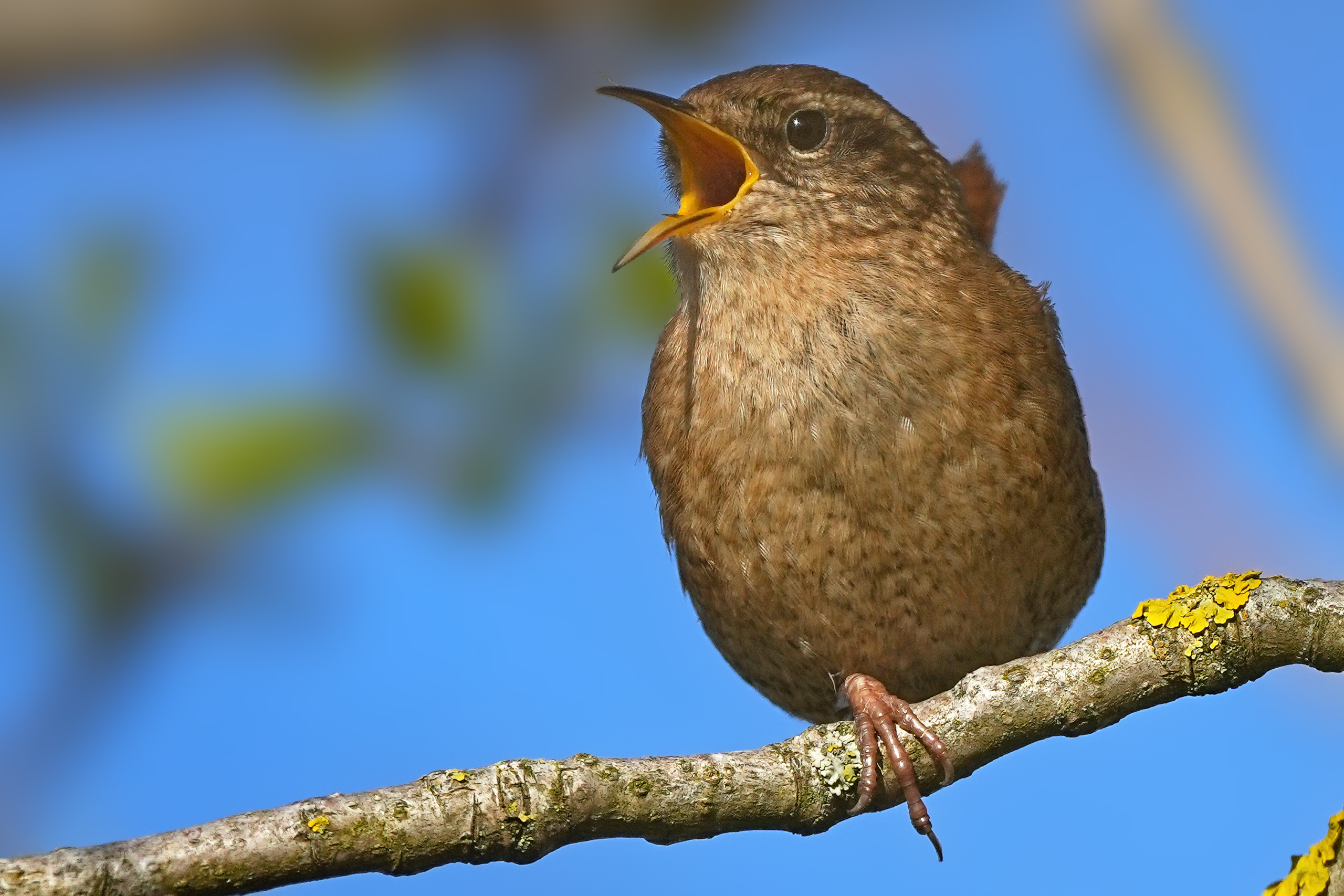 Deutlich näher war dieser Zaunkönig. Während er lautstark sein Lied trällerte, liess er sich durch nichts stören.