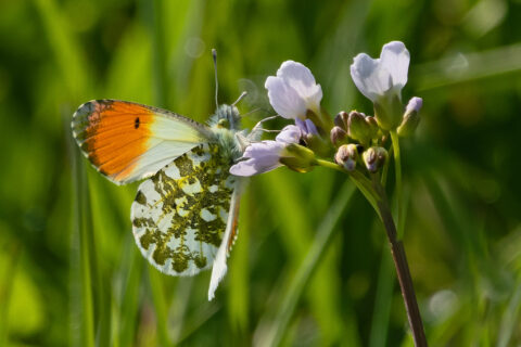 Bei einem Gang durch das NSG Hörster Feuchtwiesen bei Halle sangen heute die ersten Baumpieper sowie ein Gartenrotschwanz. Über die Wiesen flogen etliche Aurorafalter, die Männchen sind richtige „Hingucker“-Schmetterlinge mit ihren prächtigen Farben. Zum Glück gibt es noch Wiesen mit Wiesenschaumkraut, an deren Blüten die Falter reichlich Nektar finden. Auch ein Großer Fuchs, schon recht ausgeblichen, zeigte sich in der Sonne.