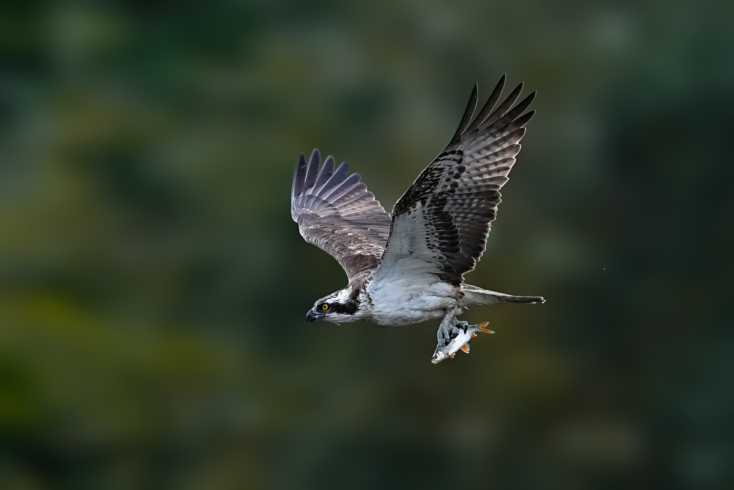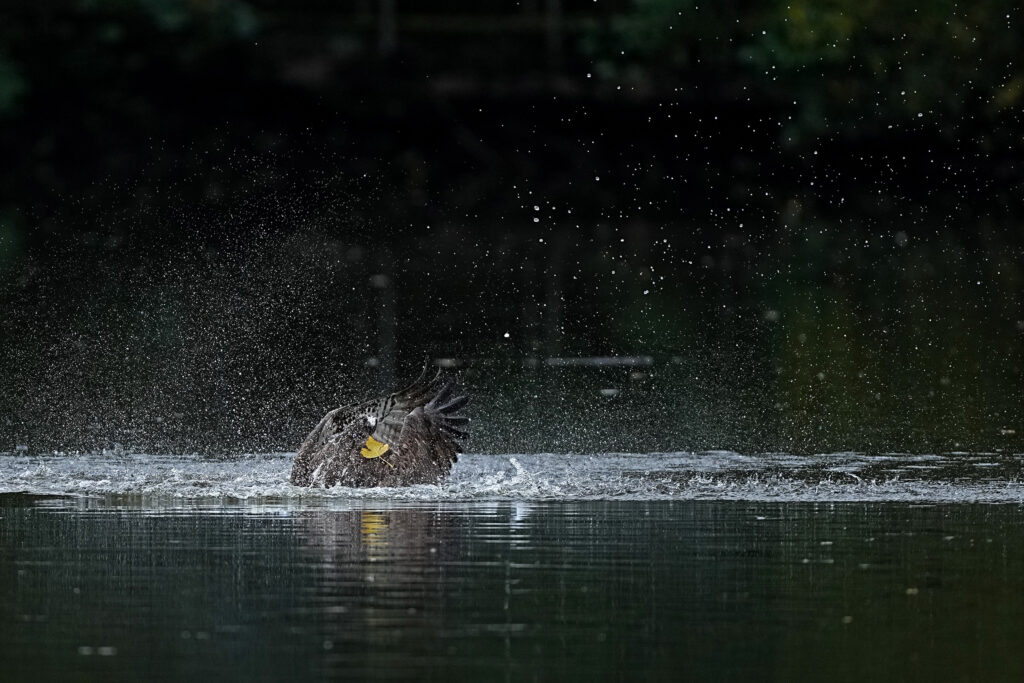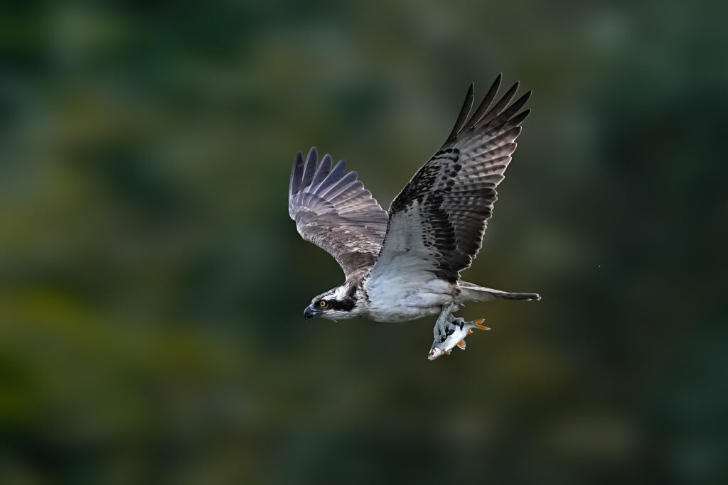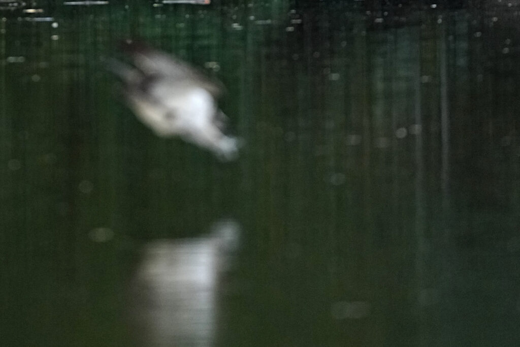 Zumindest konnte ich den Fischadler ganz brauchbar beim Auftauchen und dem Abflug mit Fisch fotografieren.