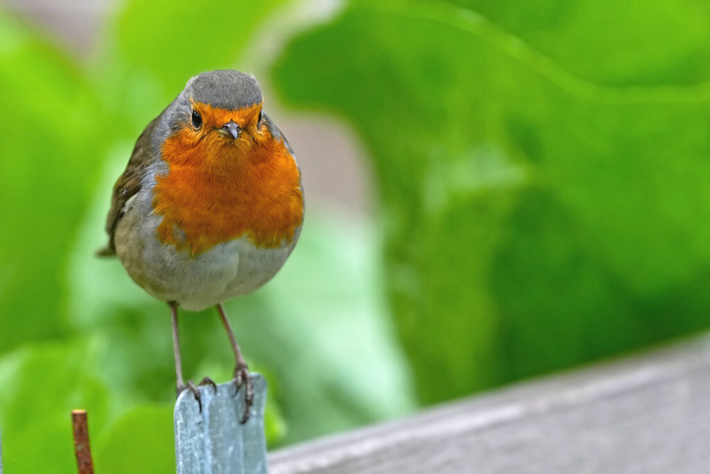 Wieder zu Hause angekommen, empfängt mich ein Rotkehlchen auf einem der Hochbeete und posiert vor den üppig wachsenden Salatpflanzen.