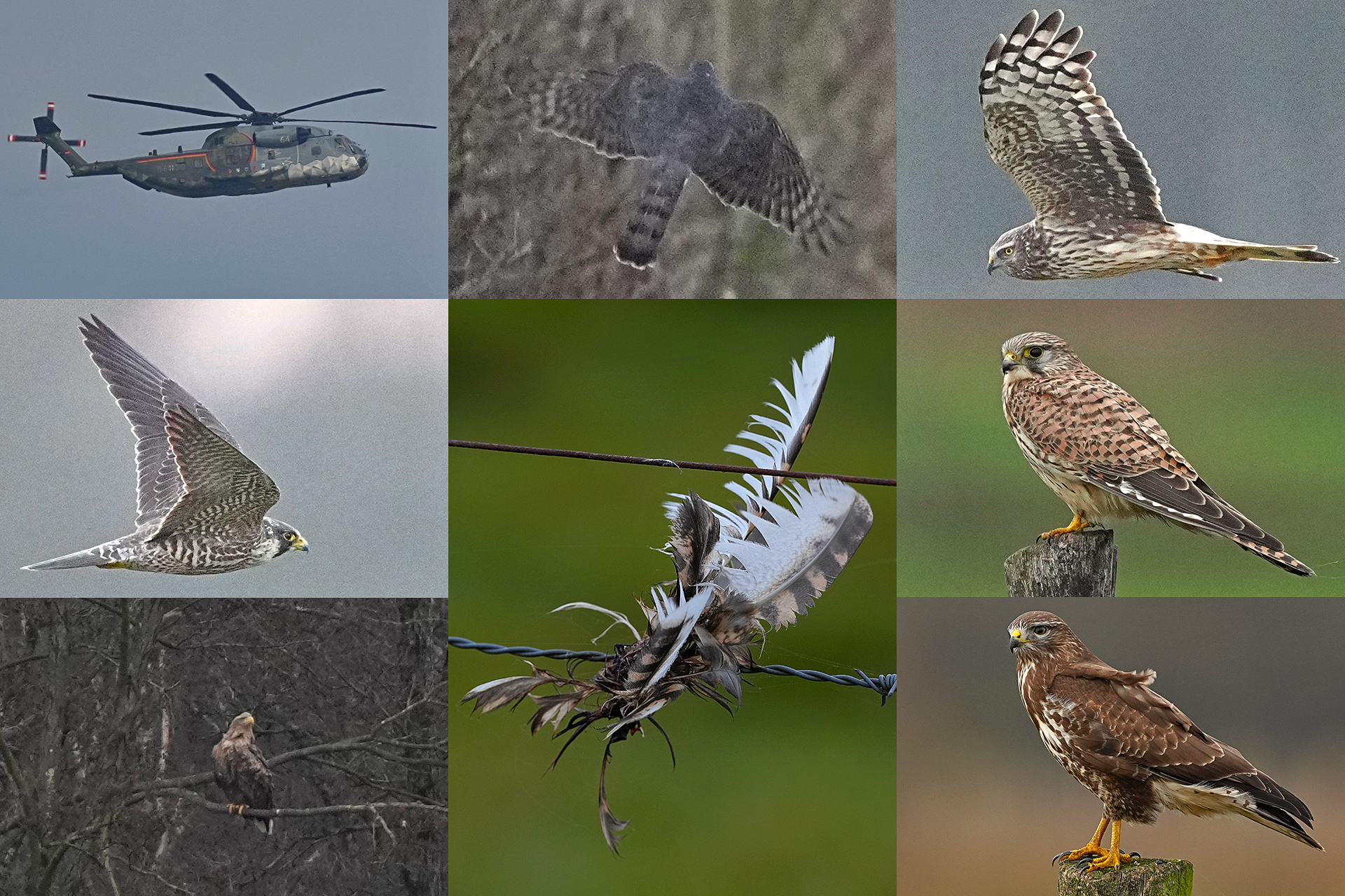 Trotzdem konnte ich einige Greifvogelarten entdecken, darunter Sperber, Kornweihe, Wanderfalke, Turmfalke, Seeadler und Mäusebussard.