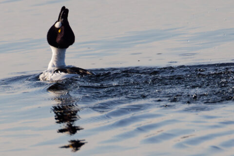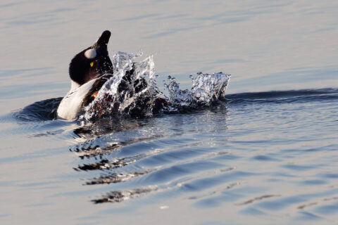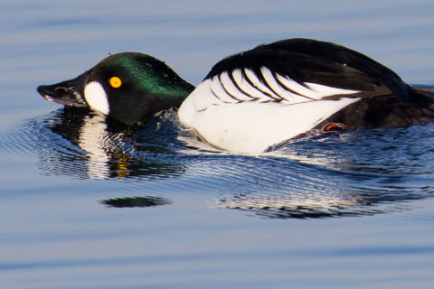 Herrlich. Ich finde vor allem die Wellen im spiegelglatten See wunderbar mit den balzenden Schellenten.